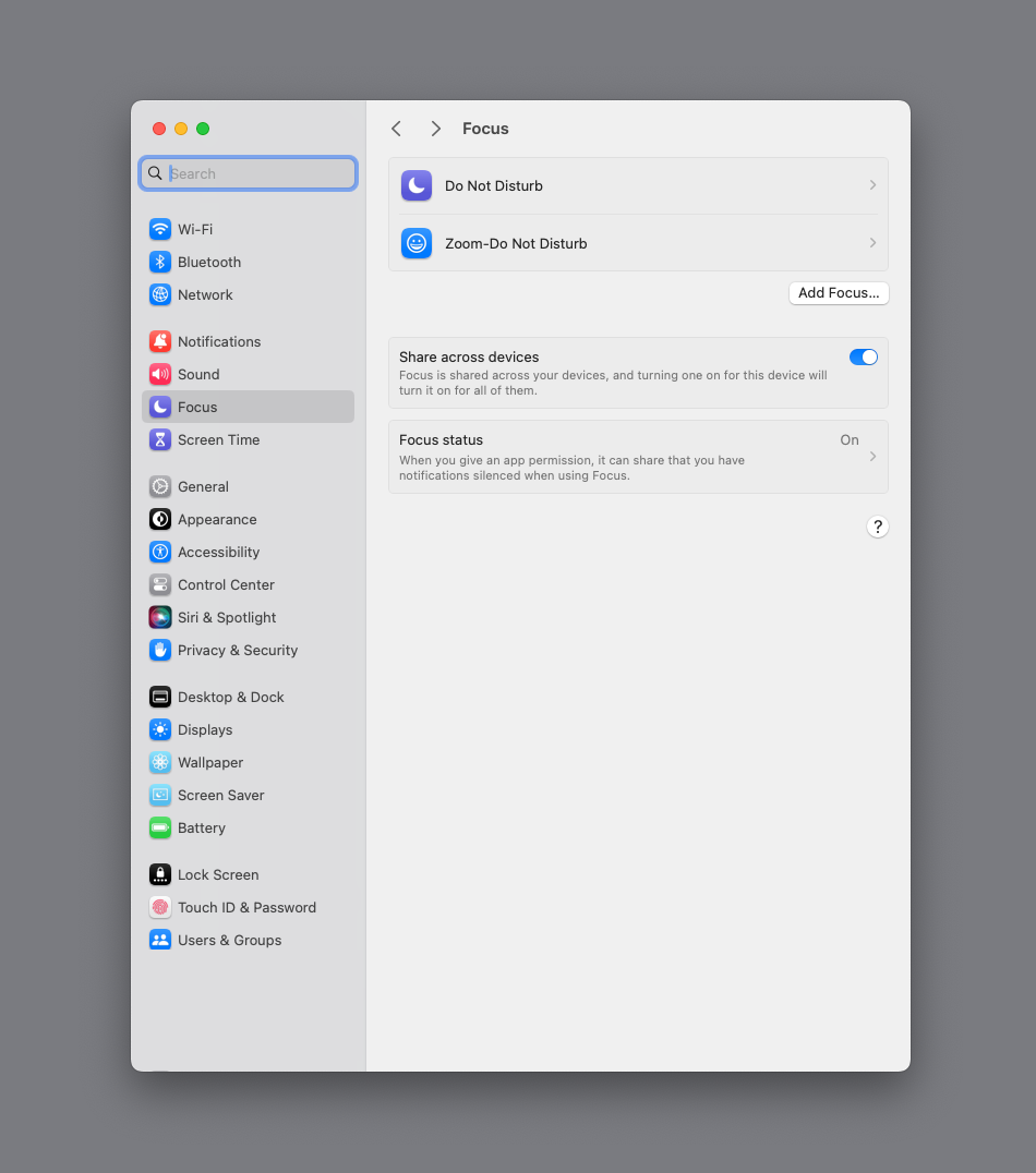 To stay focused during Zoom meetings and ensure notifications aren’t visible during screen-sharing sessions, you can use macOS’s built-in Focus mode to automatically enable “Do Not Disturb” whenever Zoom is in use. This feature helps prevent interruptions by silencing notifications and alerts while the Zoom app is open. Follow the steps below to set up this useful automation on your Mac.