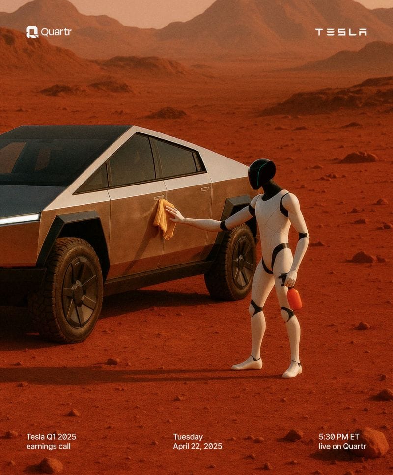 While no one from Quartr has explicitly said the visuals were made with AI, a post from co-founder Oliver Hamrin about six months ago suggests they likely were. In it, he shared a Tesla-themed graphic and noted that it was created “using a combination of ChatGPT 4o, Midjourney v7, and Figma.”