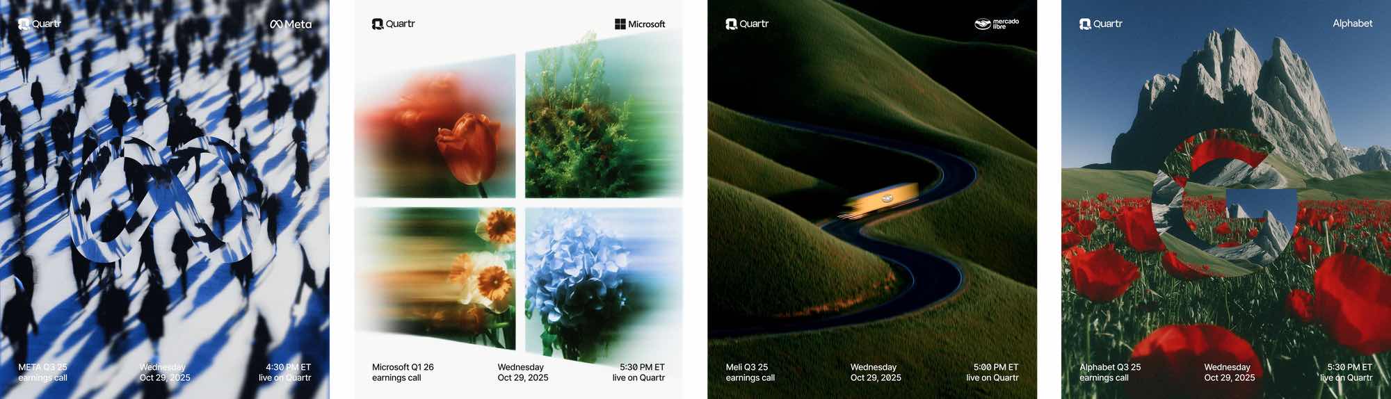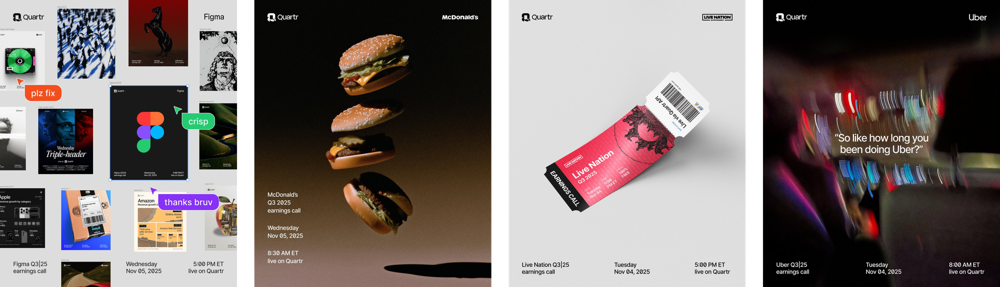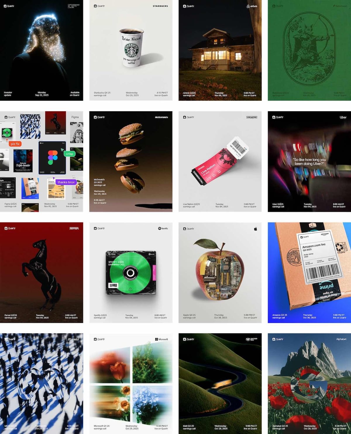 Quartr, a financial research platform that shares earnings calls and investor materials, recently released a new set of visually striking visuals for major company earnings reports. The design community’s response has been largely positive, with many praising the fresh, attention-grabbing style, though some questioned whether the visuals feel original and fully aligned with the brand.